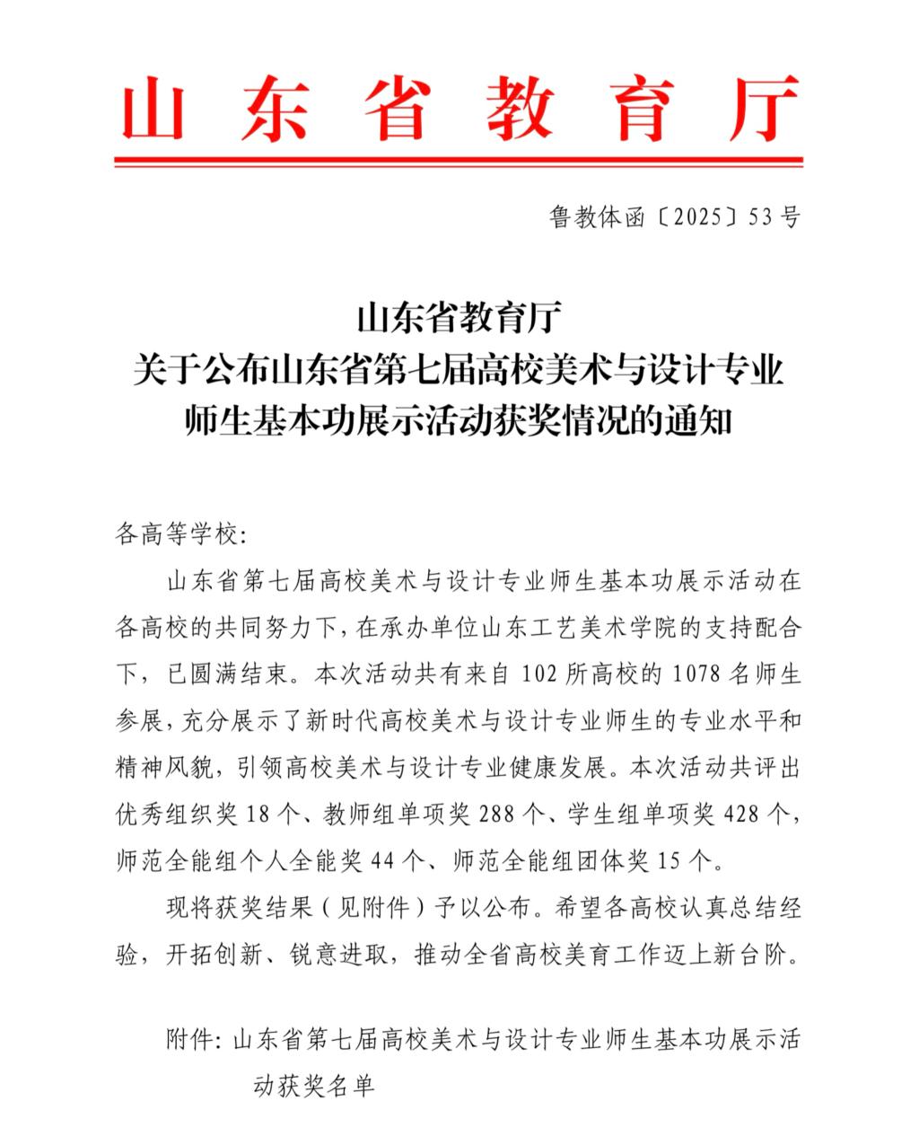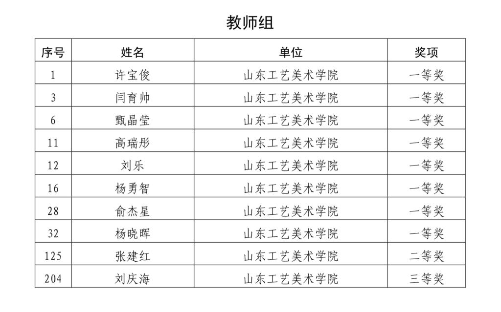 近日,山东省教育厅公布山东省第七届高校美术与设计专业师生基本功展示活动获奖名单。学校选送的10名参赛教师荣获一等奖8项、二等奖1项,三等奖1项,创我校参加该赛事以来的最好成绩。其中,造型艺术学院教师许宝俊、闫育帅、杨勇智,服装学院教师高瑞彤、刘乐,现代手工艺术学院教师俞杰星、杨晓晖,国家产教融合项目青岛基地教师甄晶莹荣获一等奖;服装学院教师张建红荣获二等奖;服装学院教师刘庆海荣获三等奖。